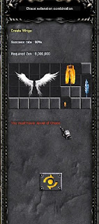 2º Você devera colocar todos os itens necessarios, uma asa normal , um chaos, uma pena e um iten ex no minimo +7+4 para aumentar a %.